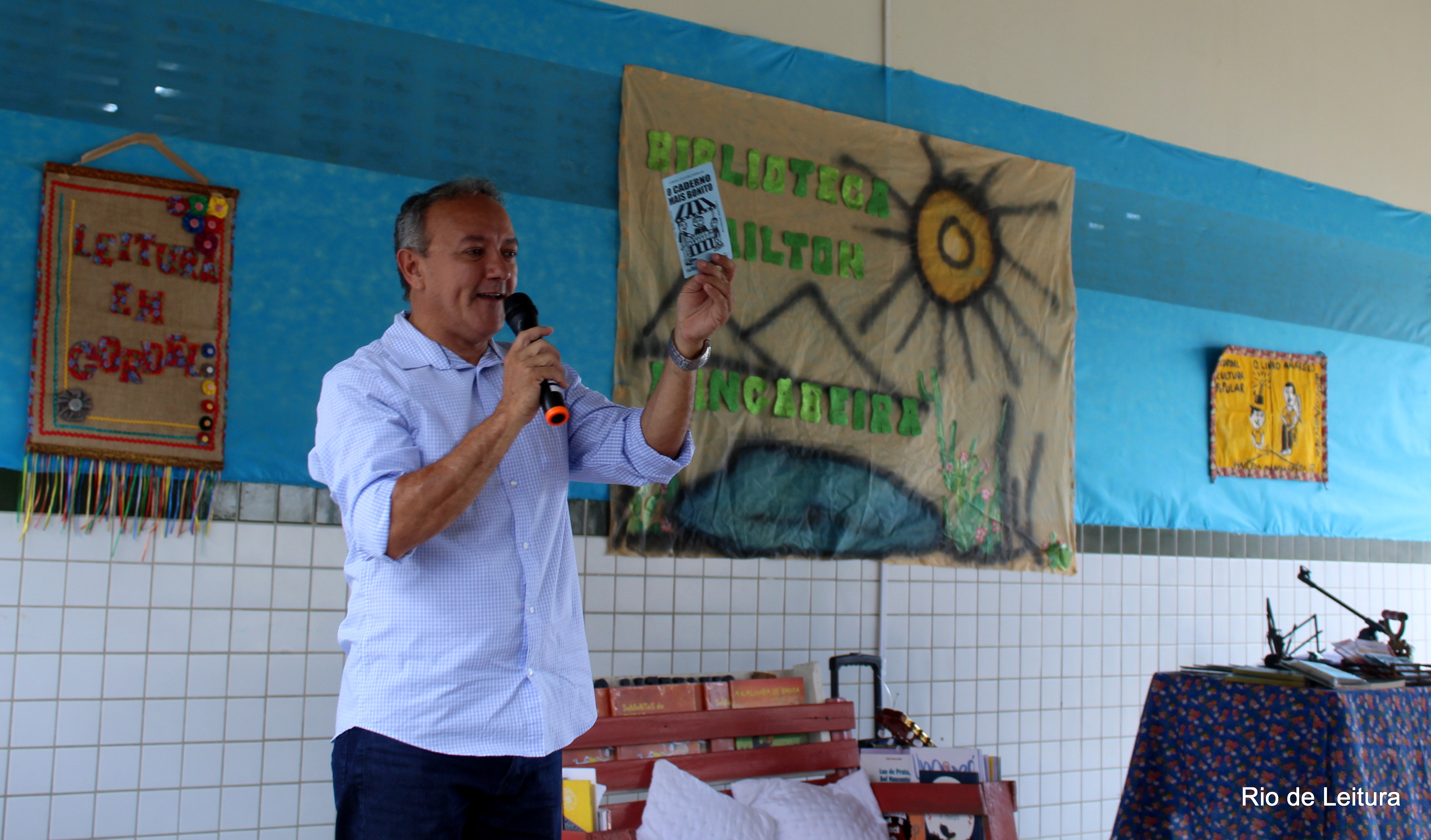 12:46:00Rio de LeituraO professor e poeta Hailton Mangabeira, emocionado, reviveu os momentos quando, nas tardes de sábado, ouvia, sentado em um tamborete e junto aos seus dez irmãos, a leitura dos cordéis adquiridos pela mãe na feira livre de Macaíba/RN. Não foi embaixo da árvore nos idos dos anos 70, mas ao lado da Biblioteca Escolar da qual é patrono, junto a meninos e meninas leitoras, na comemoração do seu 7º ano de vida.
